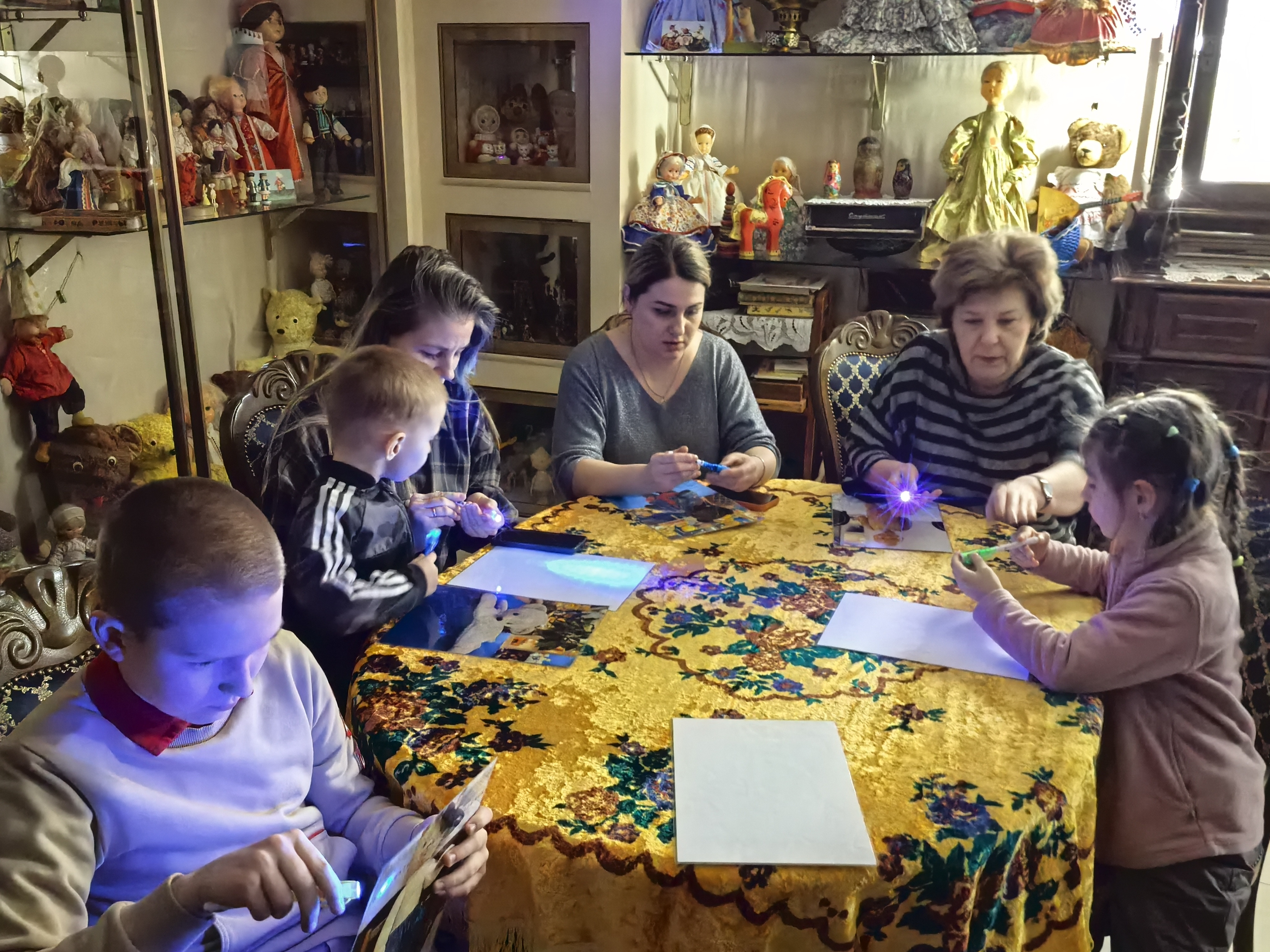 Особенно поразило ребятишек интерактивное задание: по фотографии найти ту или иную игрушку в темноте при помощи фонарика. Настоящий квест по миру фантазии и воображения! Но главное чудо ждало впереди: рассказ каждого экспоната своей собственной истории - оказалось, что каждая игрушка хранит уникальную тайну!